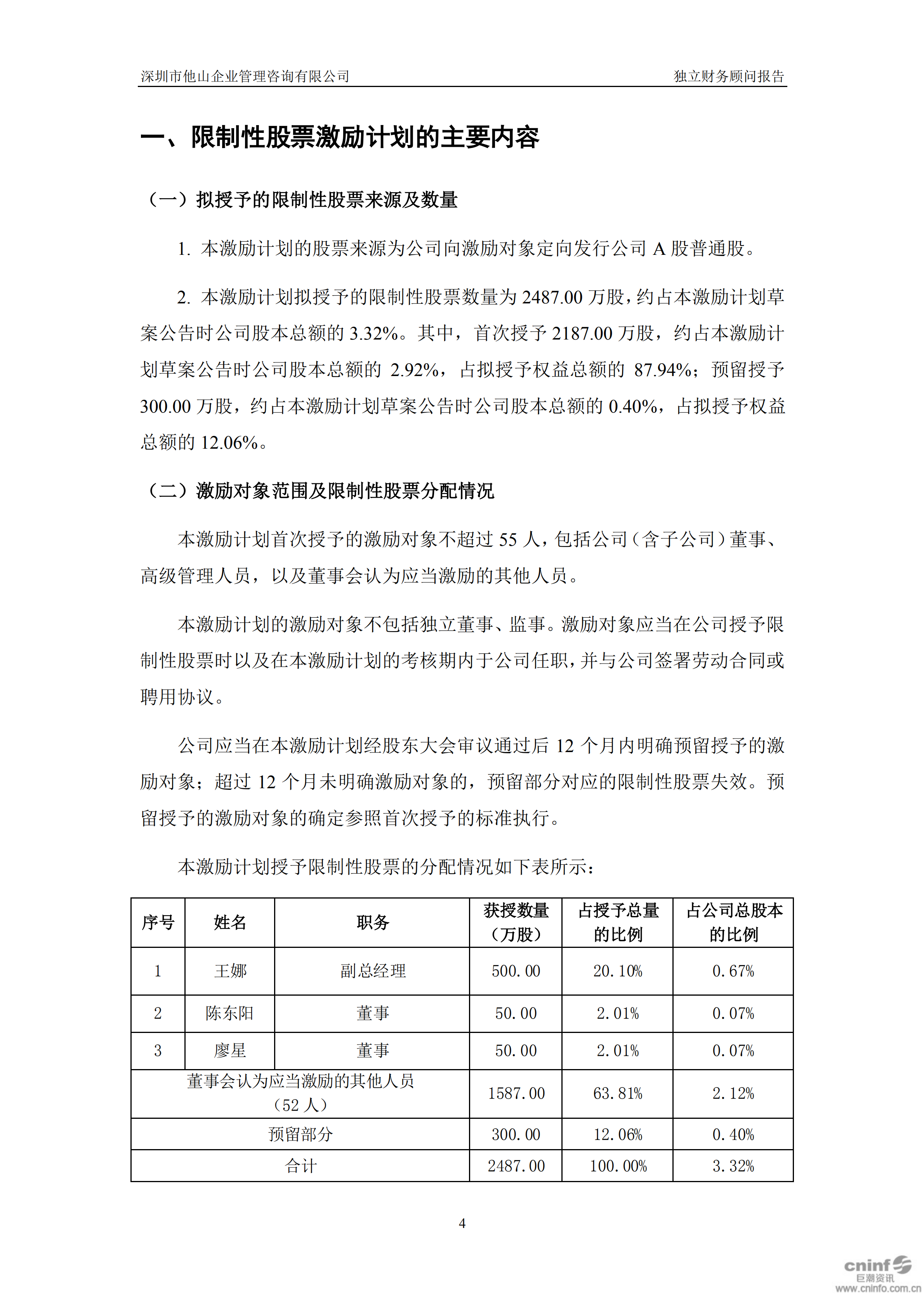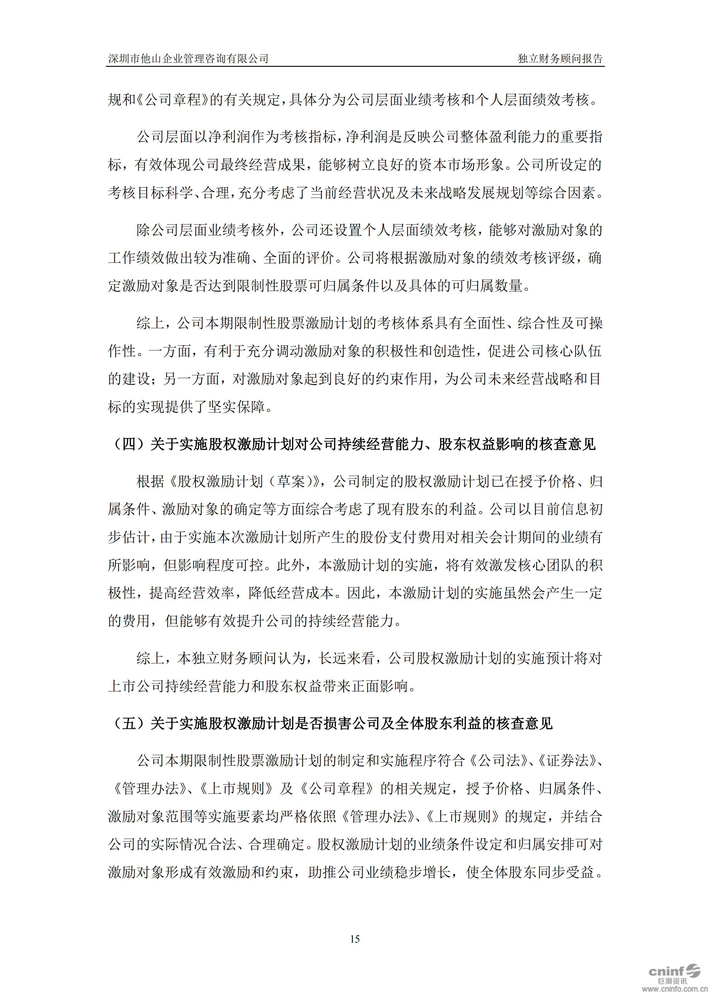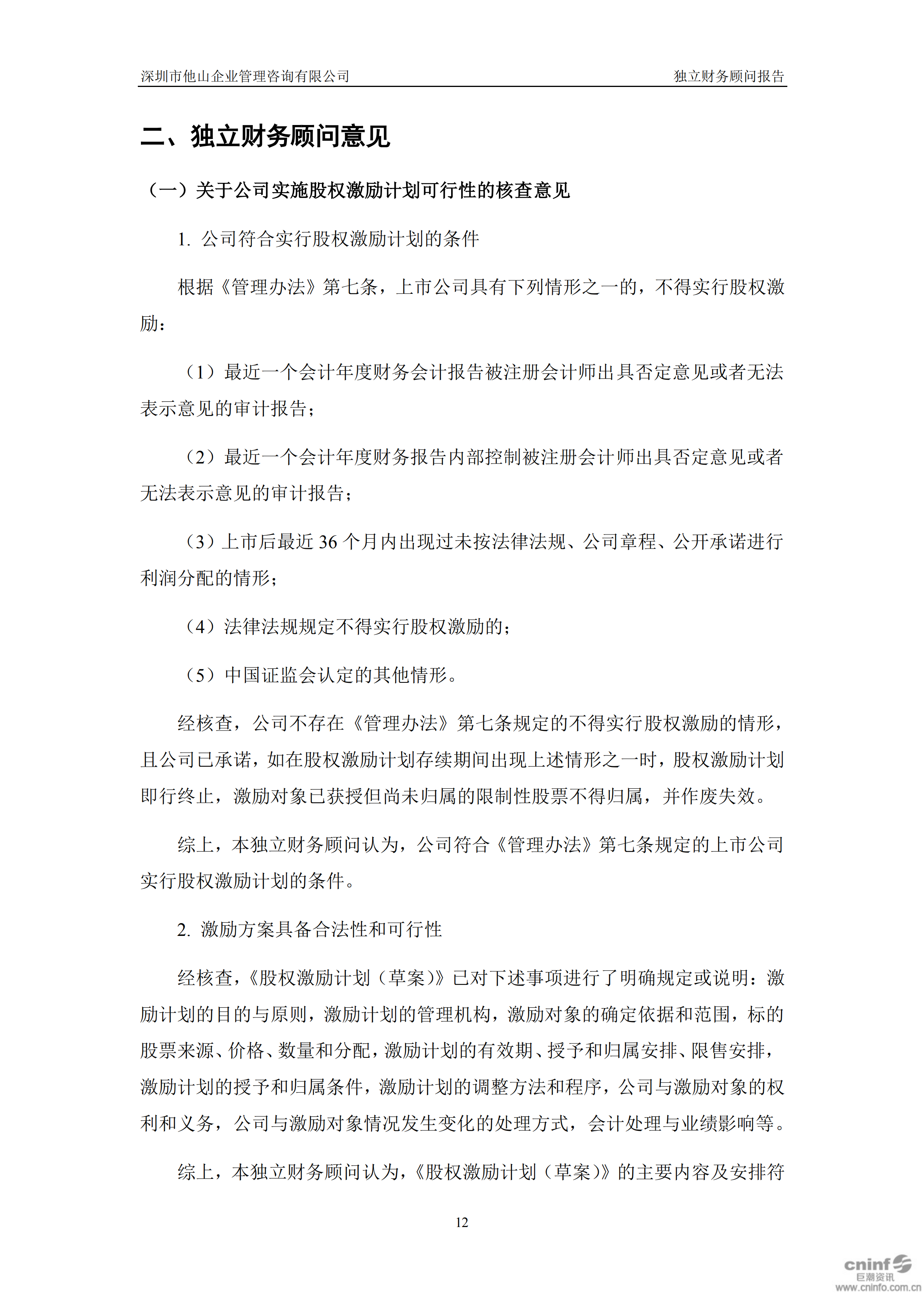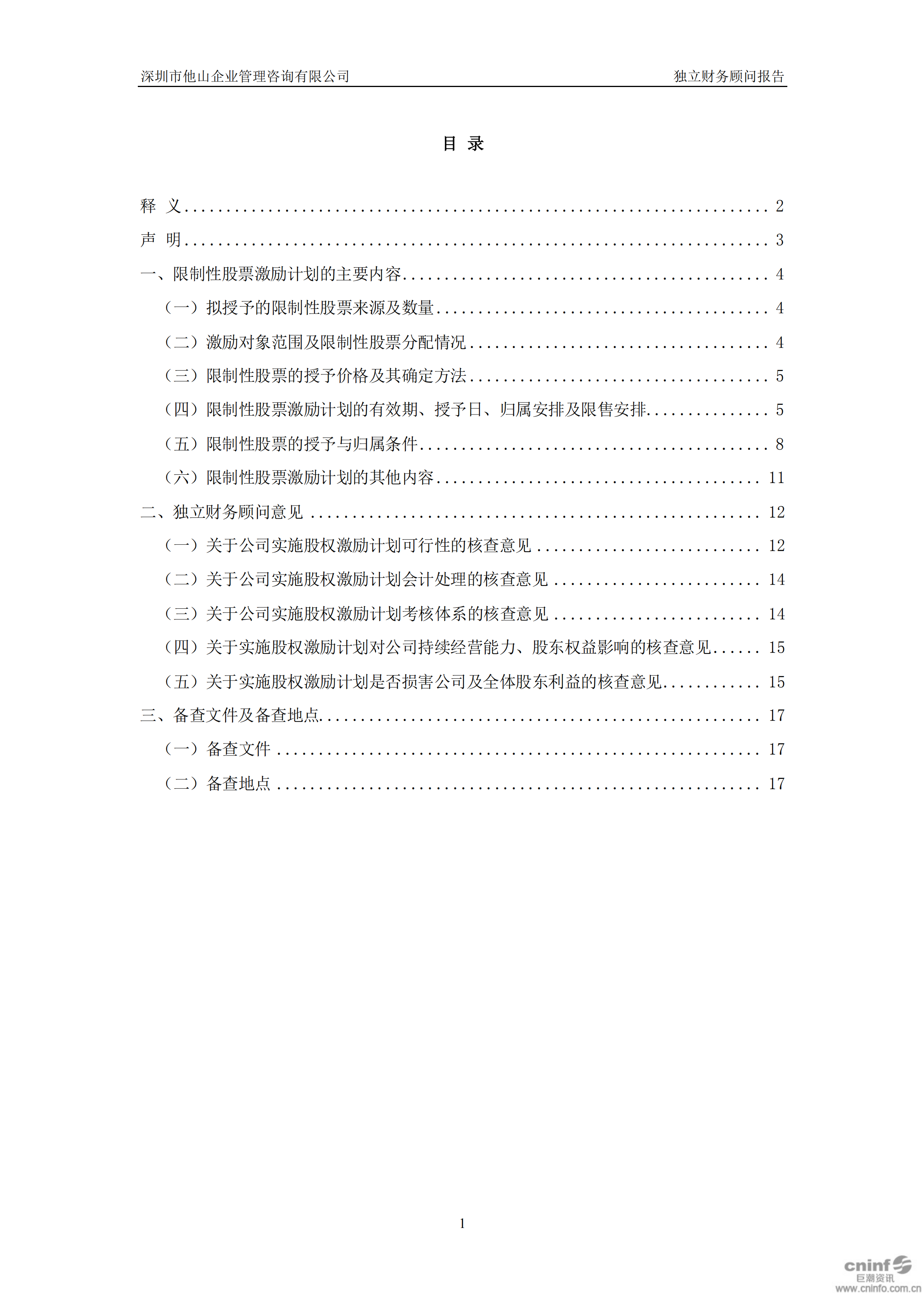 深圳市他山杏吧原创管理咨询有限公司关于公司第二期限制性股票激励计划(草案)的独立财务顾问报告