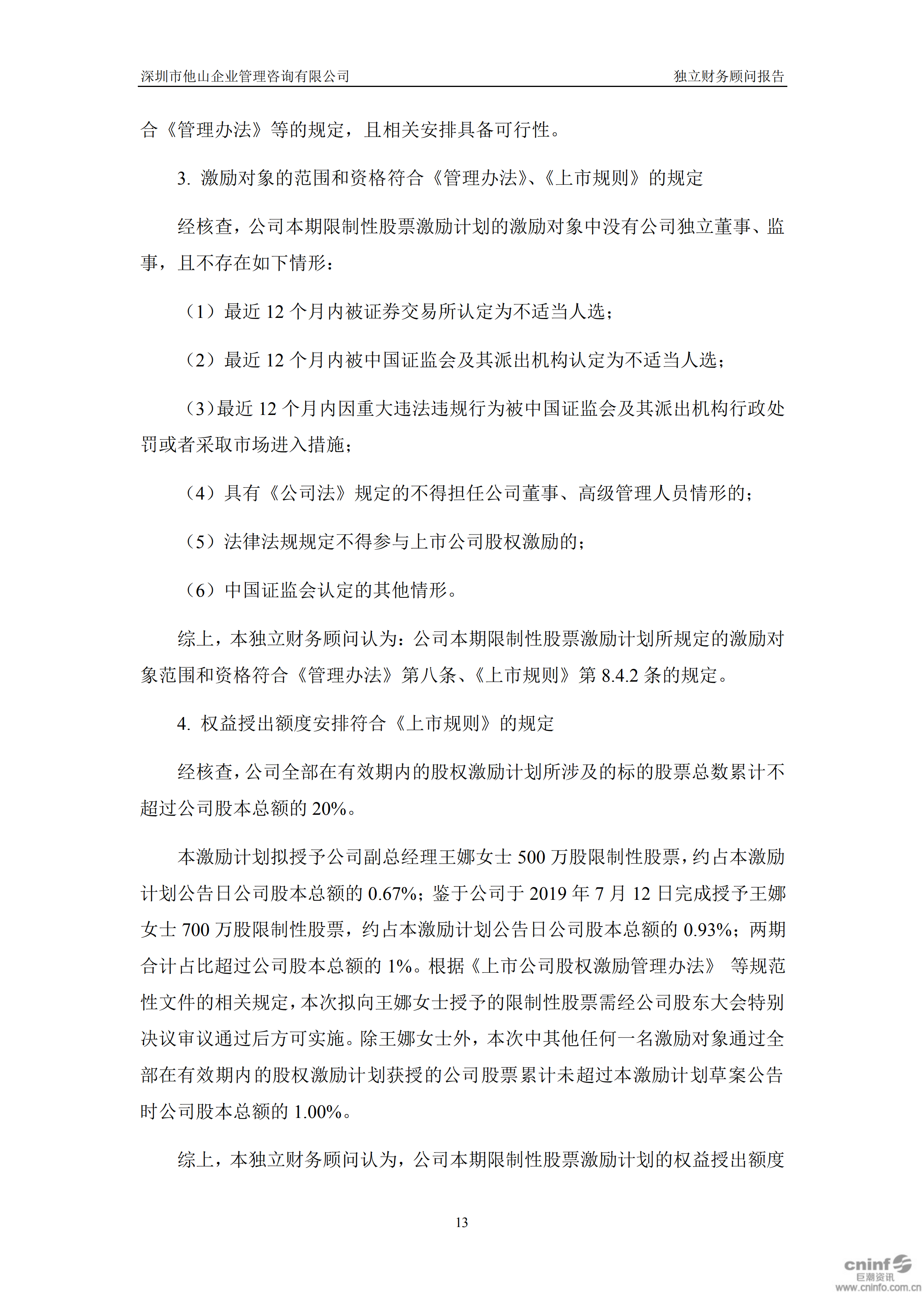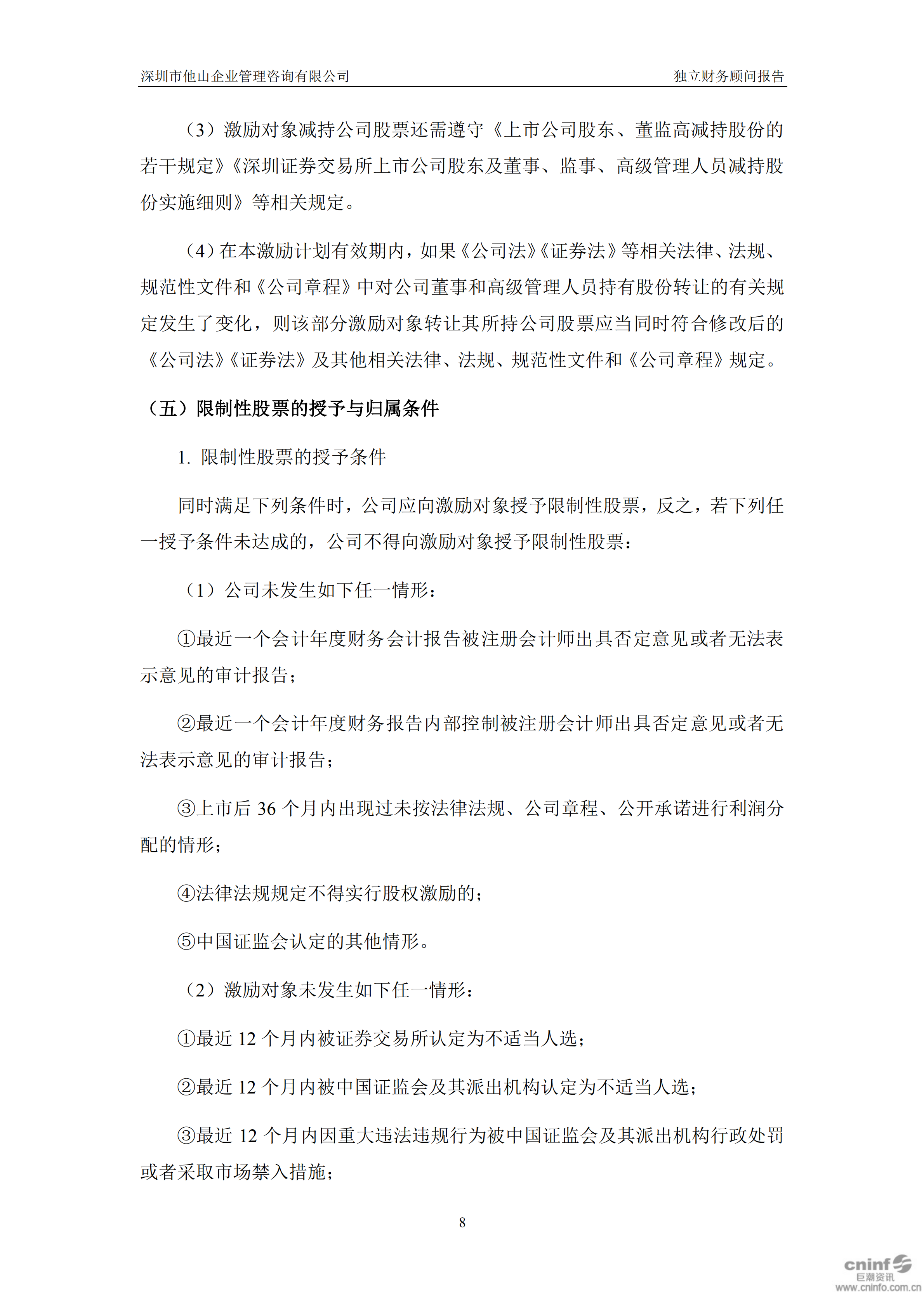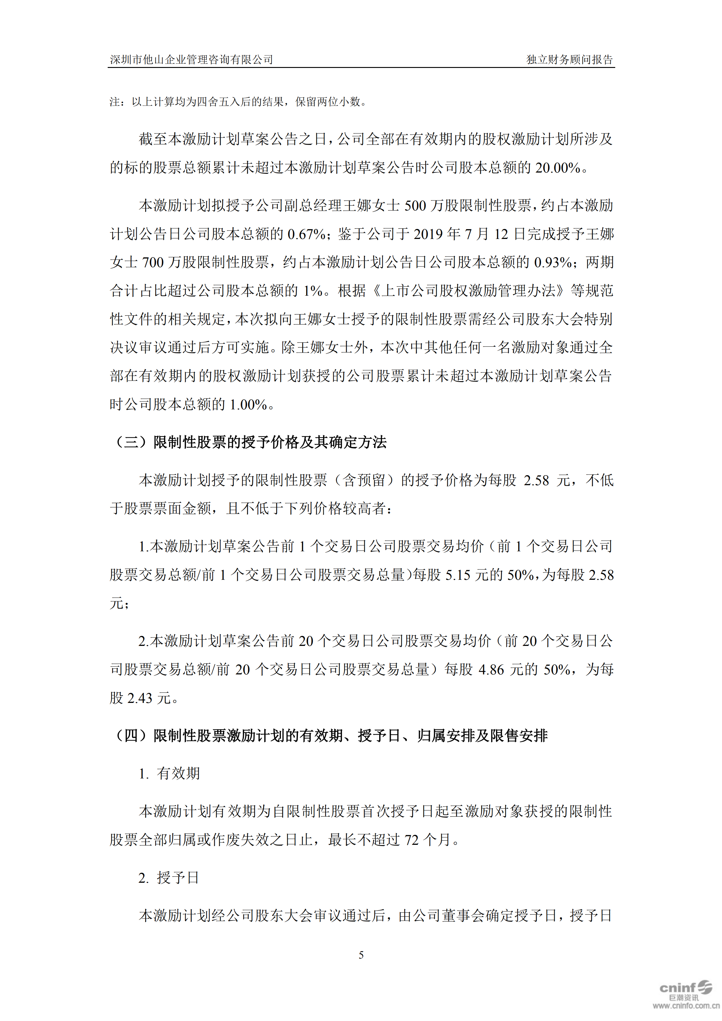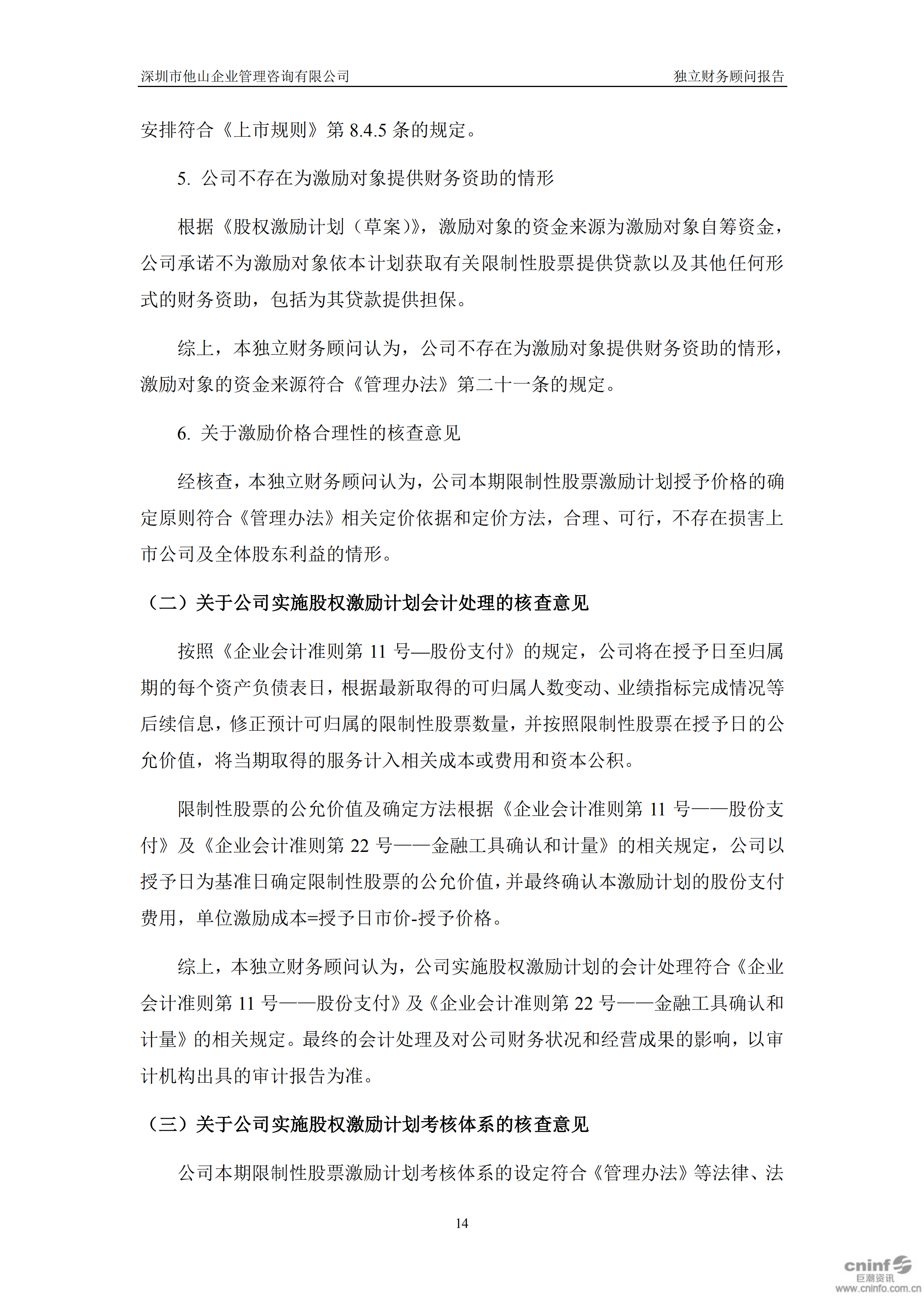深圳市他山杏吧原创管理咨询有限公司关于公司第二期限制性股票激励计划(草案)的独立财务顾问报告