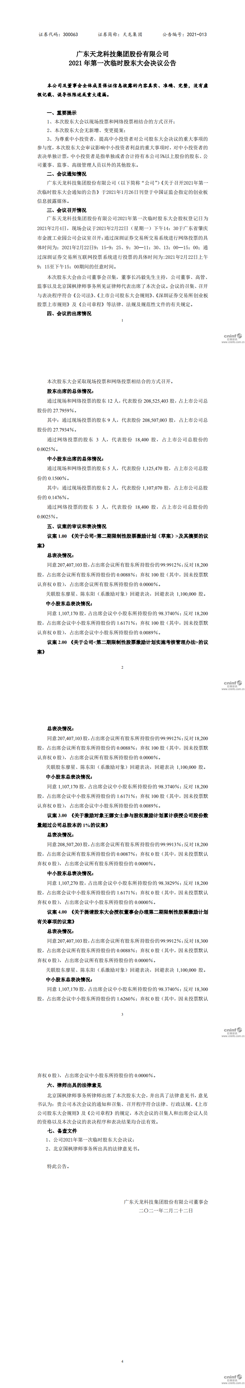 2021年第一次临时股东大会决议公告