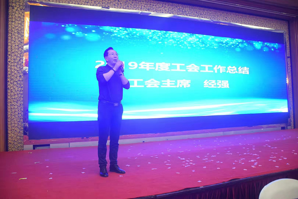 19:48,工会主席经强先生就2019年工会组织建设、困难职工帮扶、文体活动组织、职工福利发放等几个方面作为工作重点作总结及颁发困难补助金。