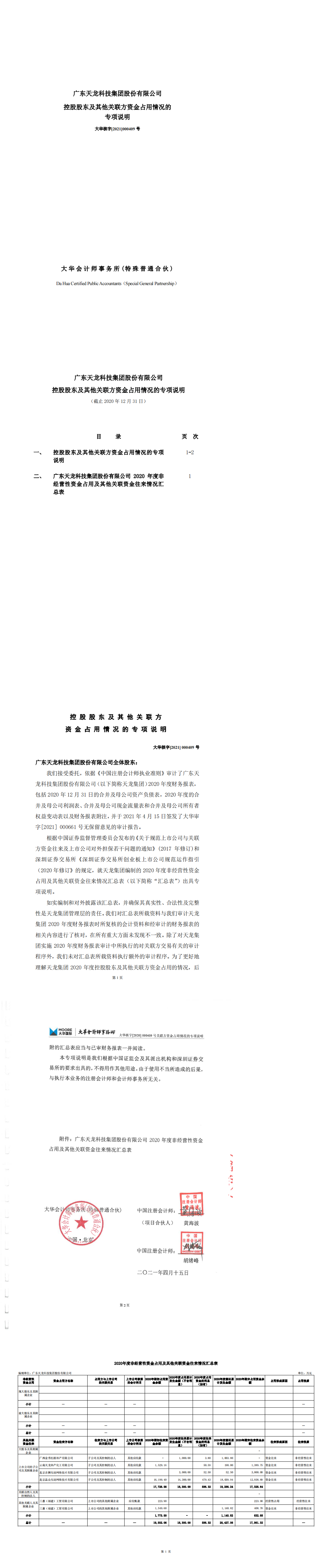 大华会计师事务所关于控股股东及其他关联方资金占用情况的专项说明