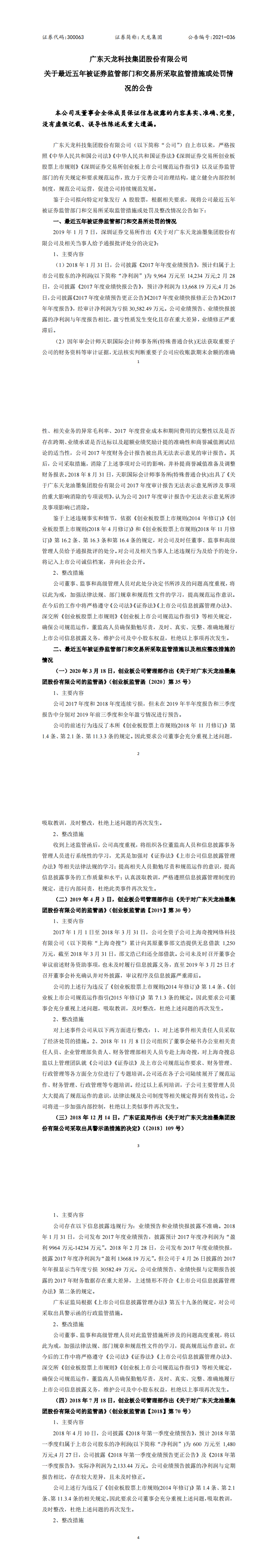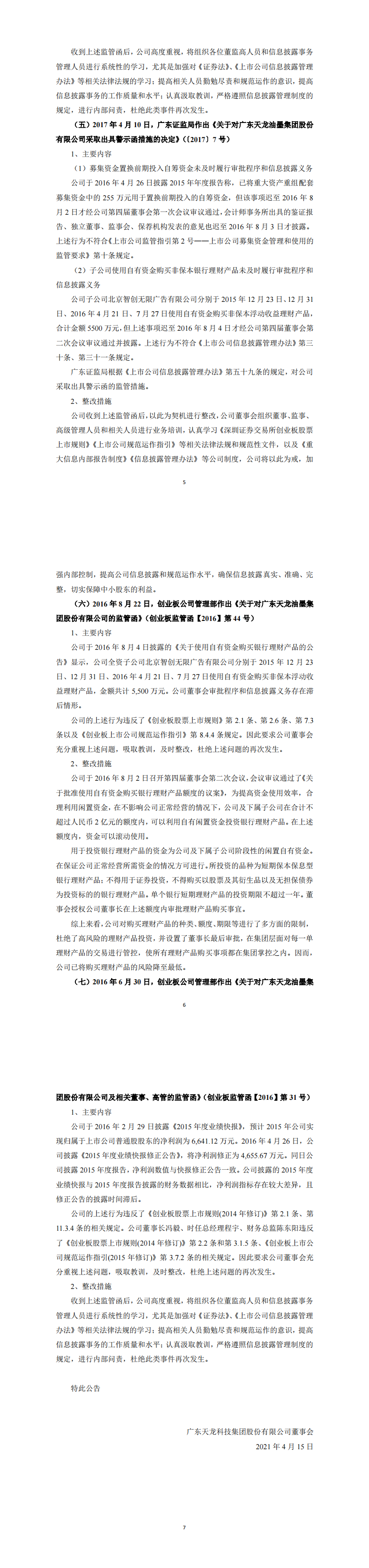 关于最近五年被证券监管部门和交易所采取监管措施或处罚情况的公告