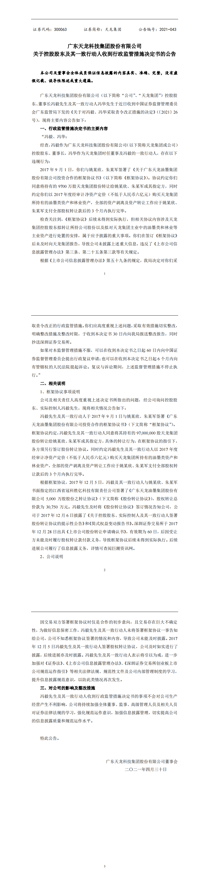 关于控股股东及其一致行动人收到行政监管措施决定书的公告