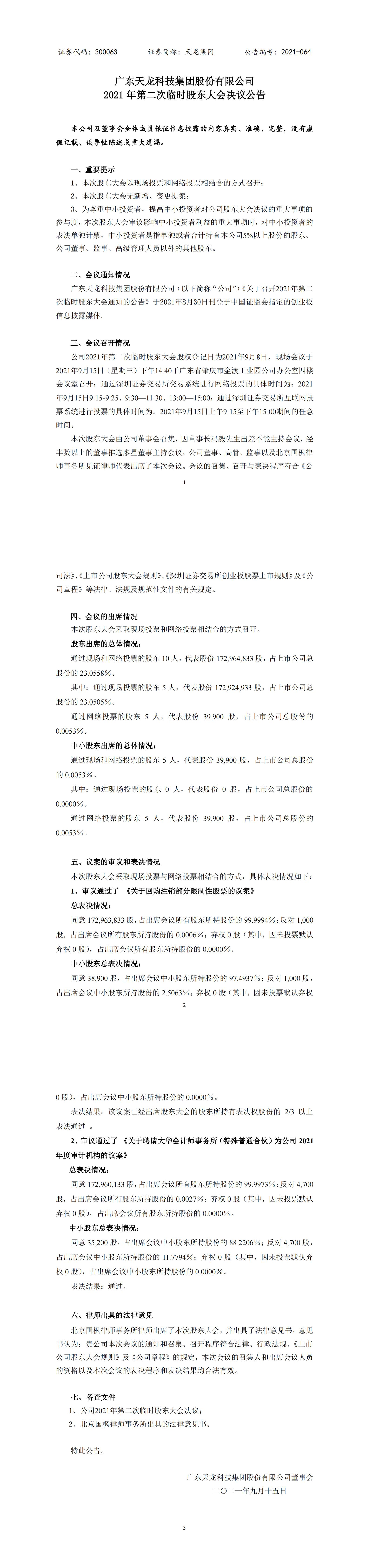2021年第二次临时股东大会决议公告
