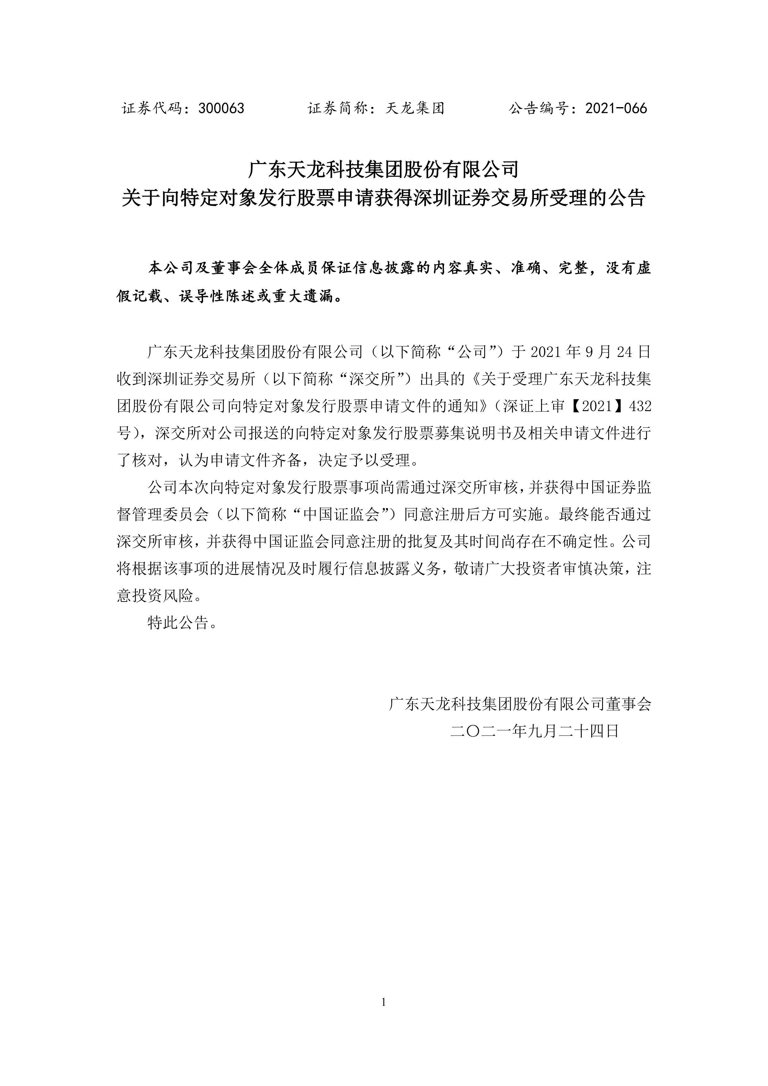 关于向特定对象发行股票申请获得深圳证券交易所受理的公告