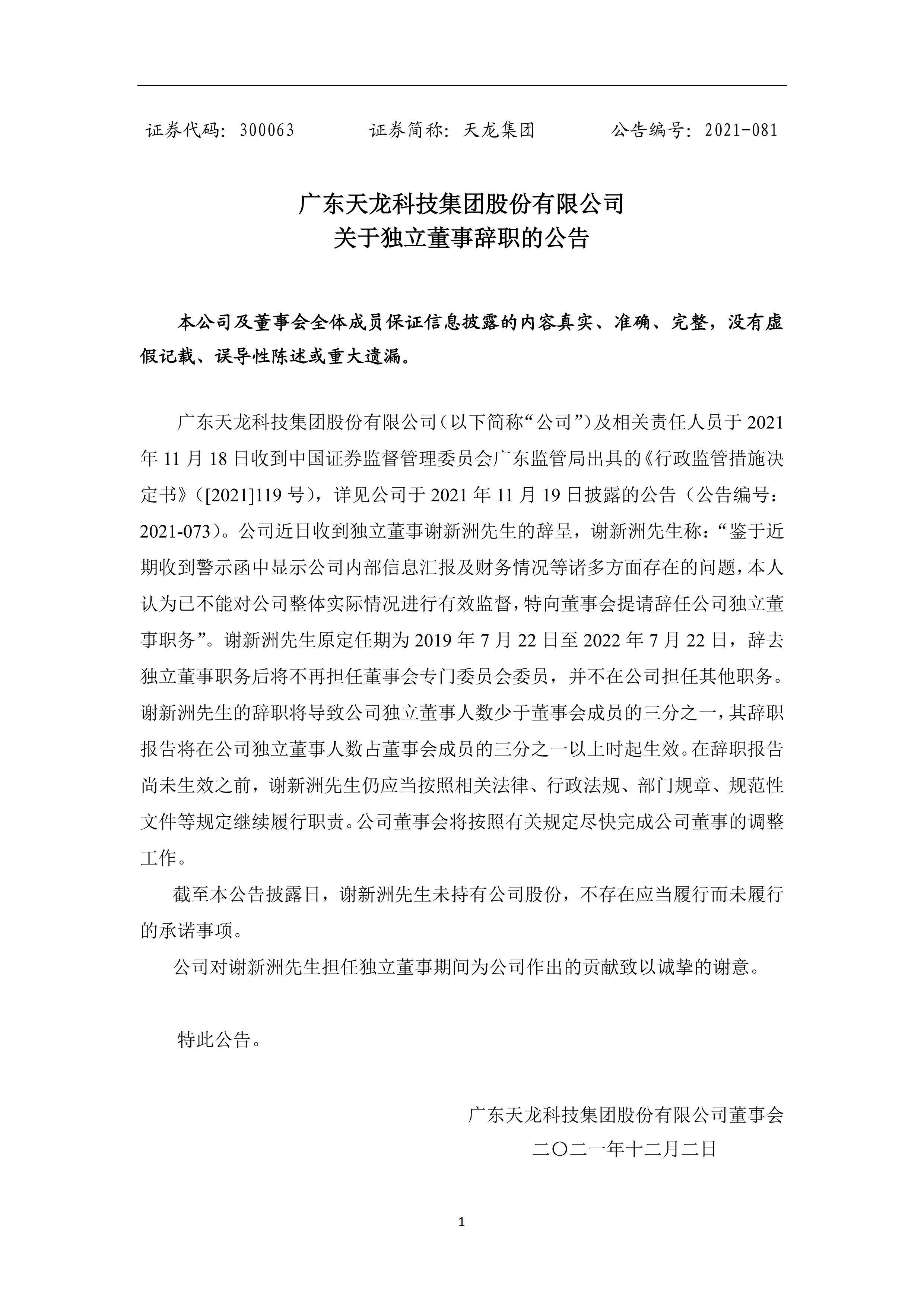 关于独立董事辞职的公告
