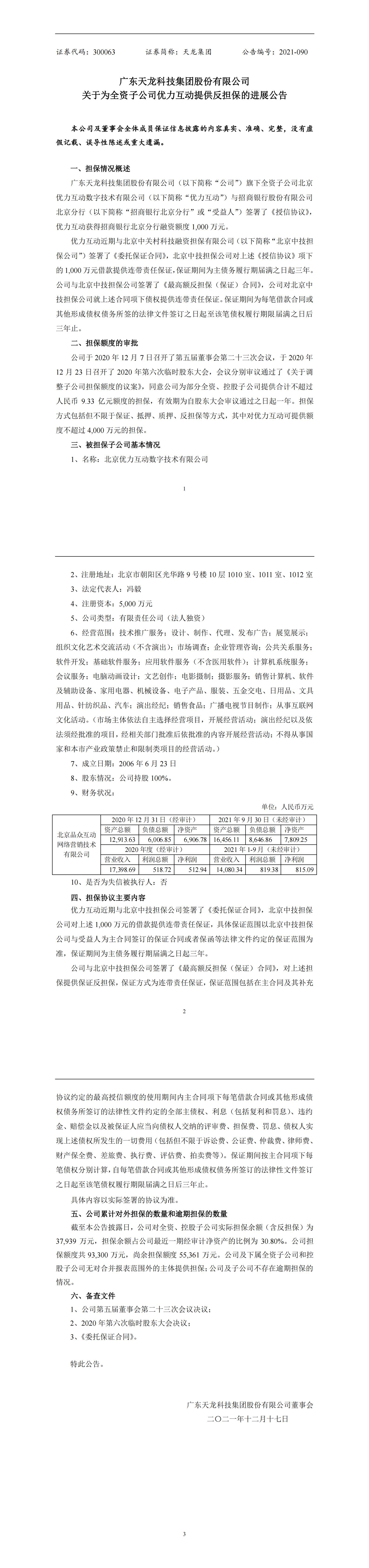 关于为全资子公司优力互动提供反担保的进展公告