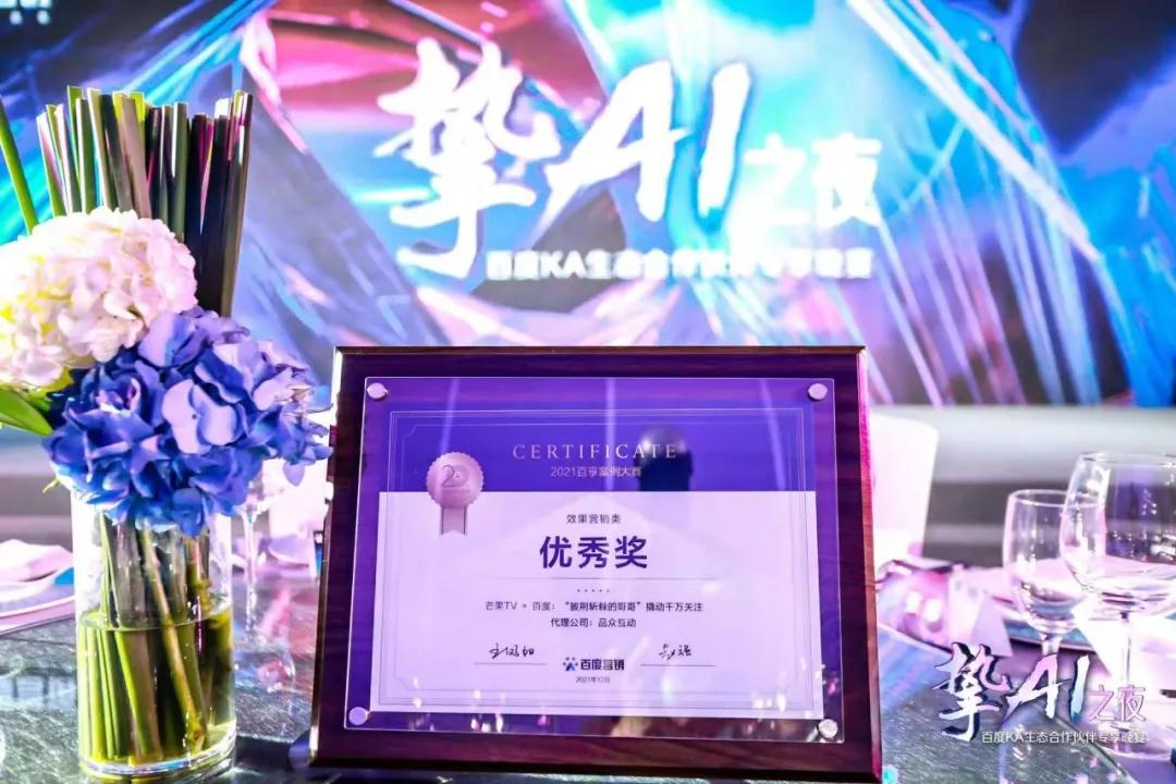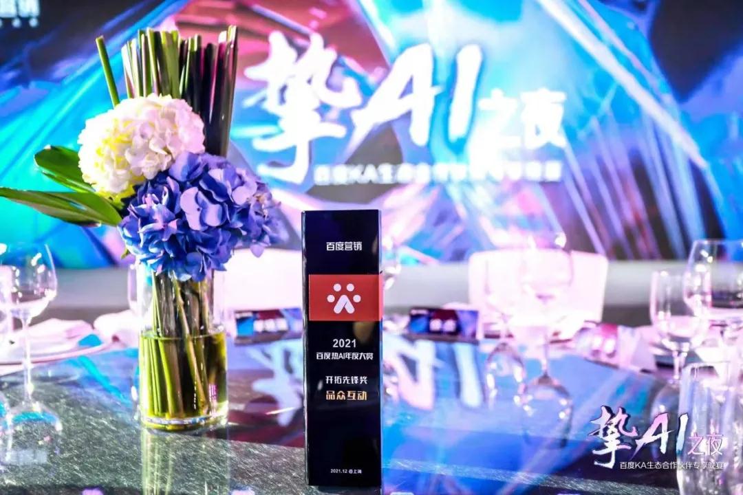 长久以来,品众创新充分整合百度的技术实力和产品生态,以创新及充满创意的营销方式,为客户提供多元服务,撬动商业价值高增长,以此荣获“2021百度热AI年度大赏开拓先锋奖”。