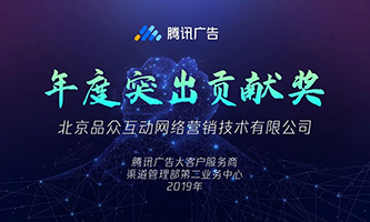 “年度突出贡献奖”是腾讯广告对2019年大客户服务商携手完成年度任务的优秀服务商进行的鼓励和嘉奖。
