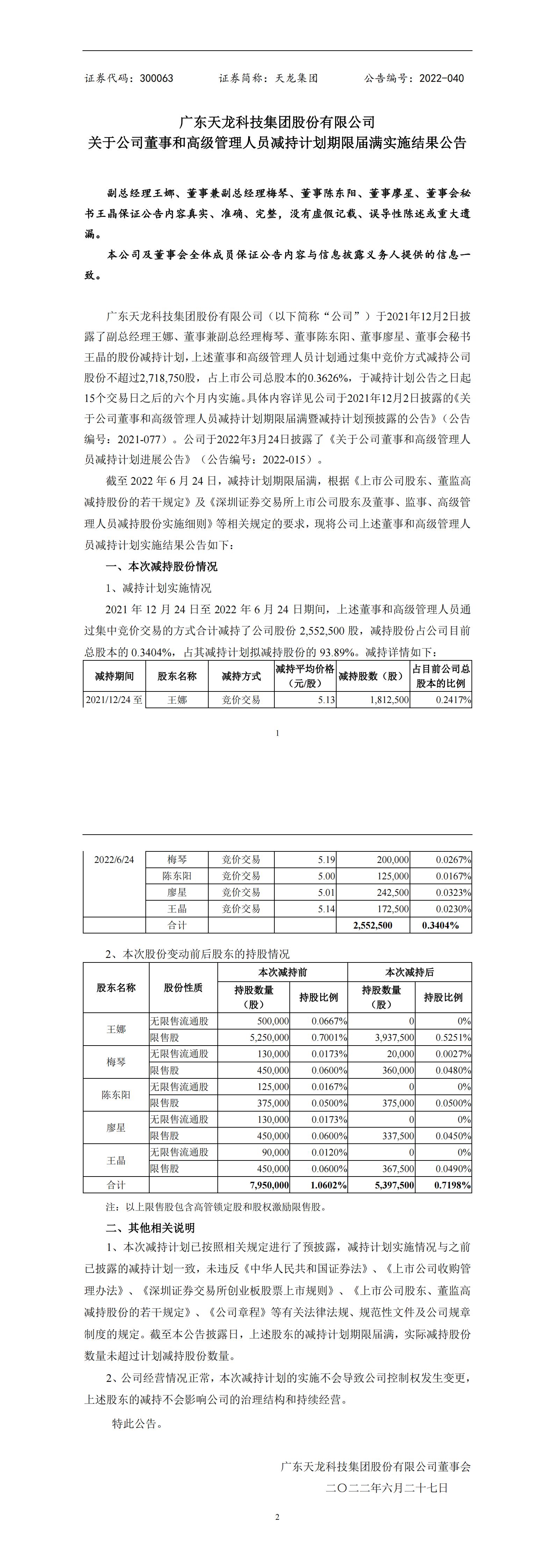 关于公司董事和高级管理人员减持计划期限届满实施结果公告