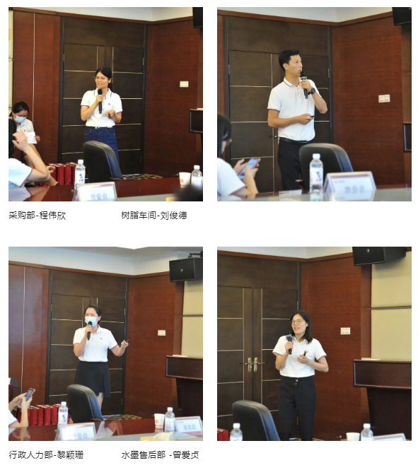 本次大赛设置一等奖1名,二等奖2名,三等奖3名,参与奖若干。经过选手们的激烈角逐,评委从“作品内容”、“版面设计”“演示情况”“演讲呈现”“肢体语言”及“时间控制”六个维度评分。根据综合评分,行政人力部黎颖珊获一等奖,知识管理部黄若晨、财务管理部敖睿获二等奖,水墨售后部曾爱贞、水性油墨车间廖伟锋、销售部陈立平获三等奖,其余人员获参与奖。观众、评委及高管对本次活动及参赛选手给予高度评价,同时对接下来的各角度PPT优化工作提出了明确的指示,对来年PPT大赛提出了新要求。