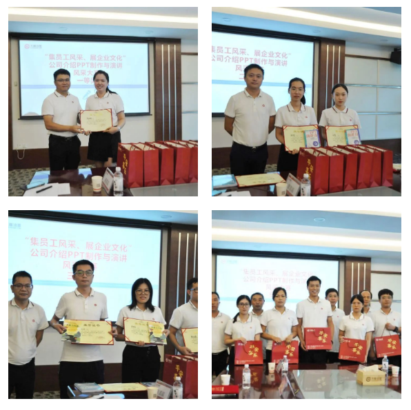 公司高管及评委为本次大赛获奖者颁发证书及奖品,一起见证他们的成长与荣光。本次PPT制作与演讲大赛,充分锻炼员工的结构化思维和表达能力,给大家提供互相交流切磋的机会,挑战自我,收获成长,互相学习,以彼之长,补己之短,促进员工跨部门沟通,加深员工对公司的了解,激发员工学习热情,树立信心。大赛圆满落幕,我们还需持续努力,行而不辍,乘风破浪,未来可期。