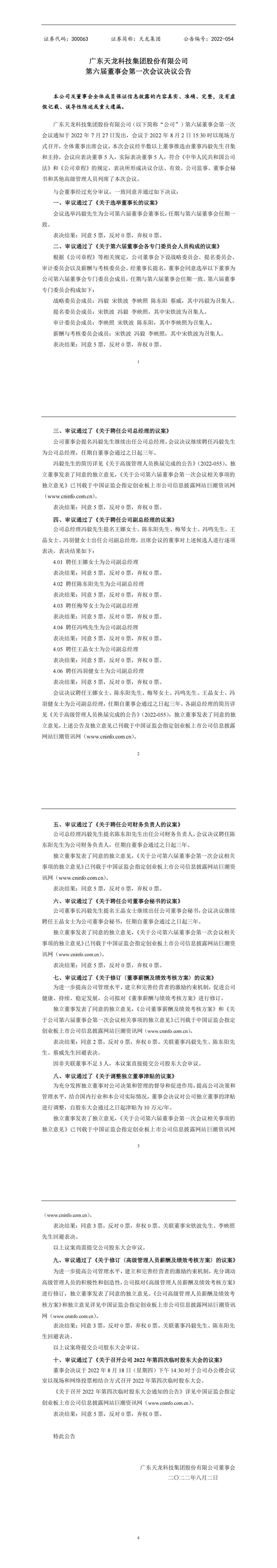 第六届董事会第一次会议决议公告