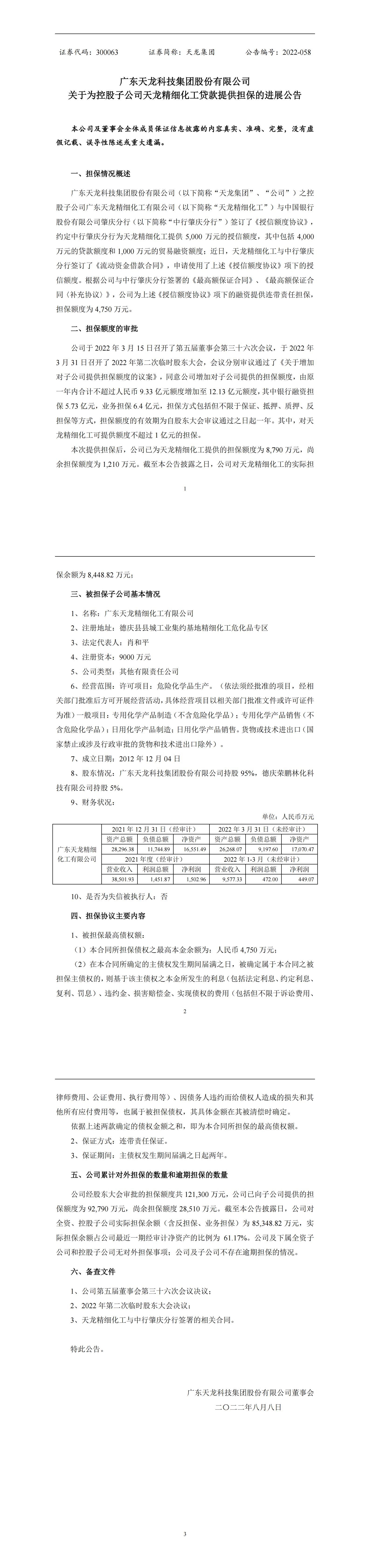 关于为控股子公司杏吧原创 精细化工贷款提供担保的进展公告