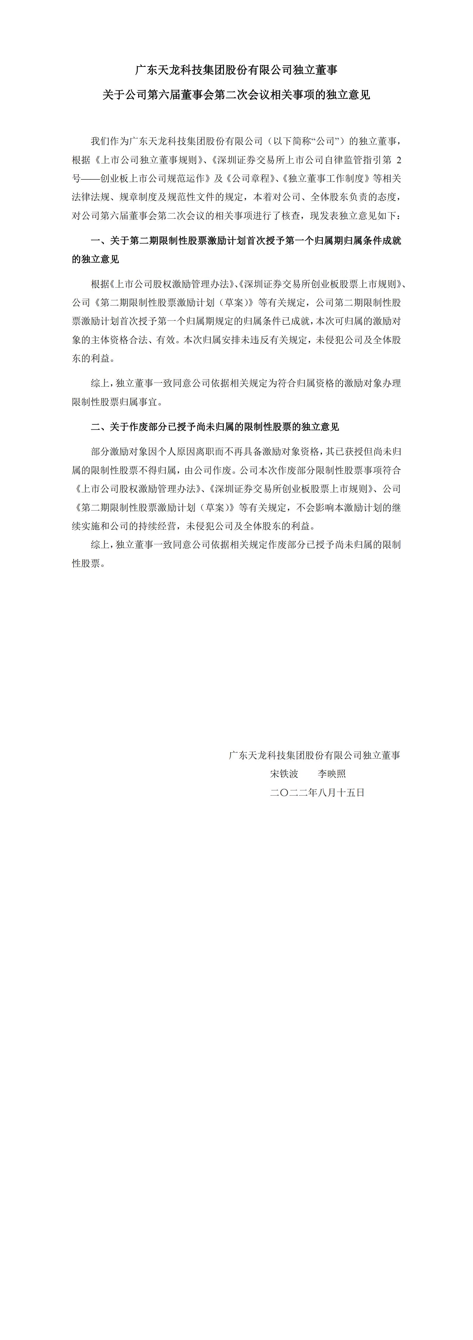 独立董事关于公司第六届董事会第二次会议相关事项的独立意见