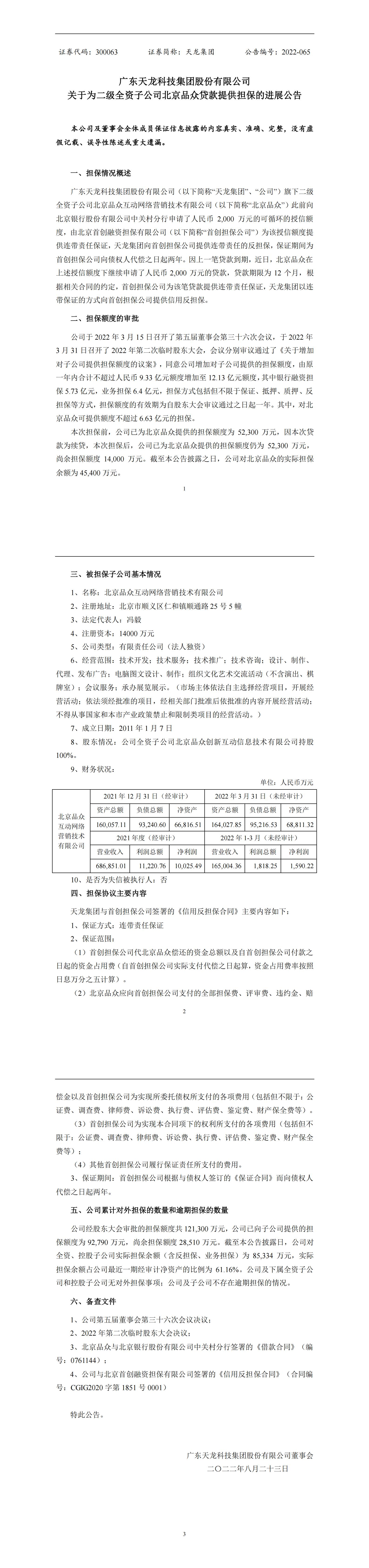 关于为二级全资子公司北京品众贷款提供担保的进展公告