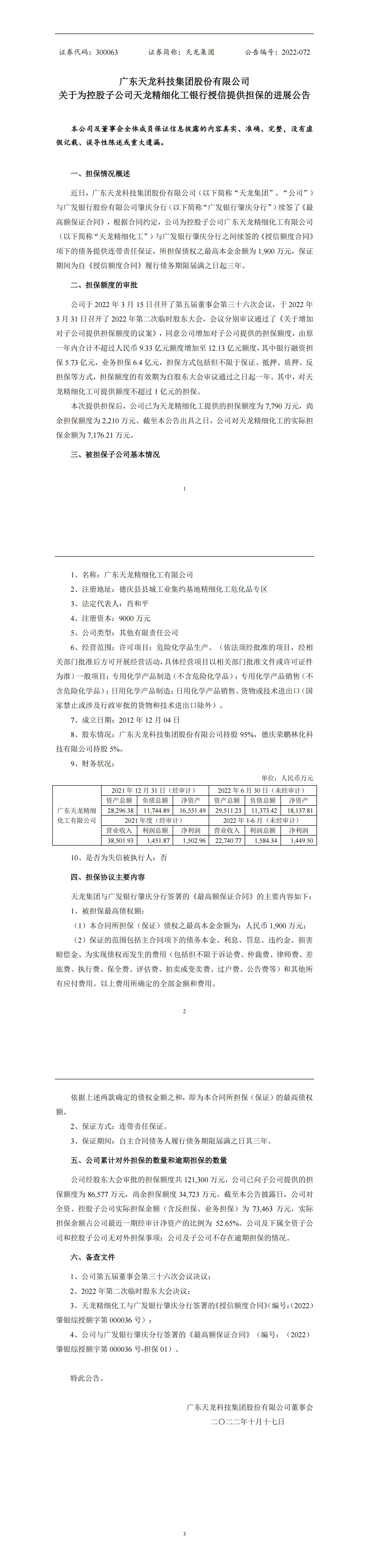 关于为控股子公司杏吧原创 精细化工银行授信提供担保的进展公告