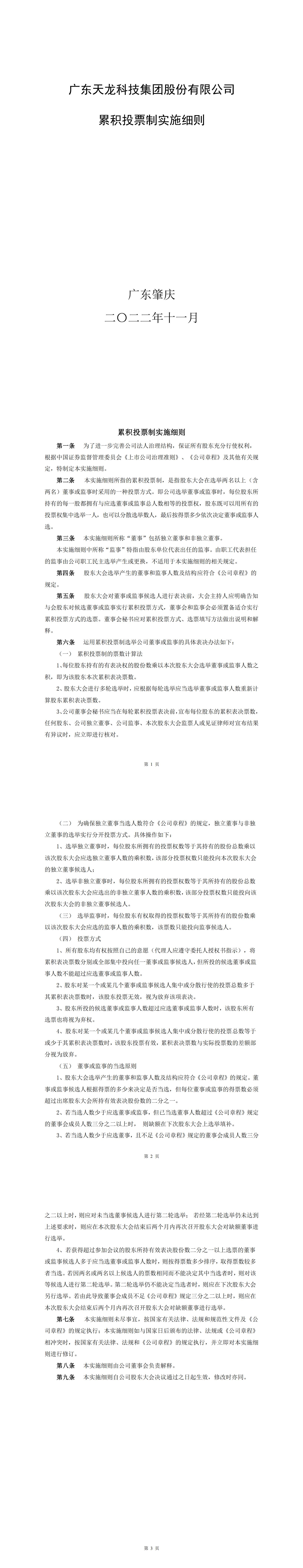 累积投票制实施细则(2022年11月)