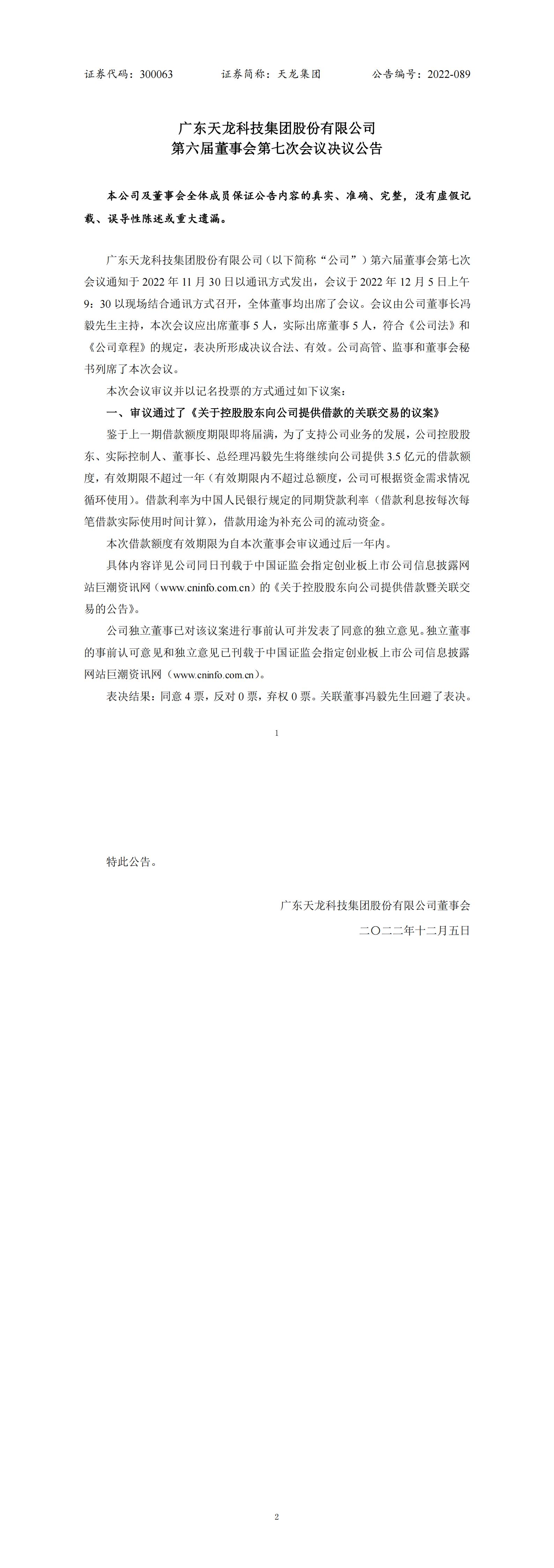 第六届董事会第七次会议决议公告