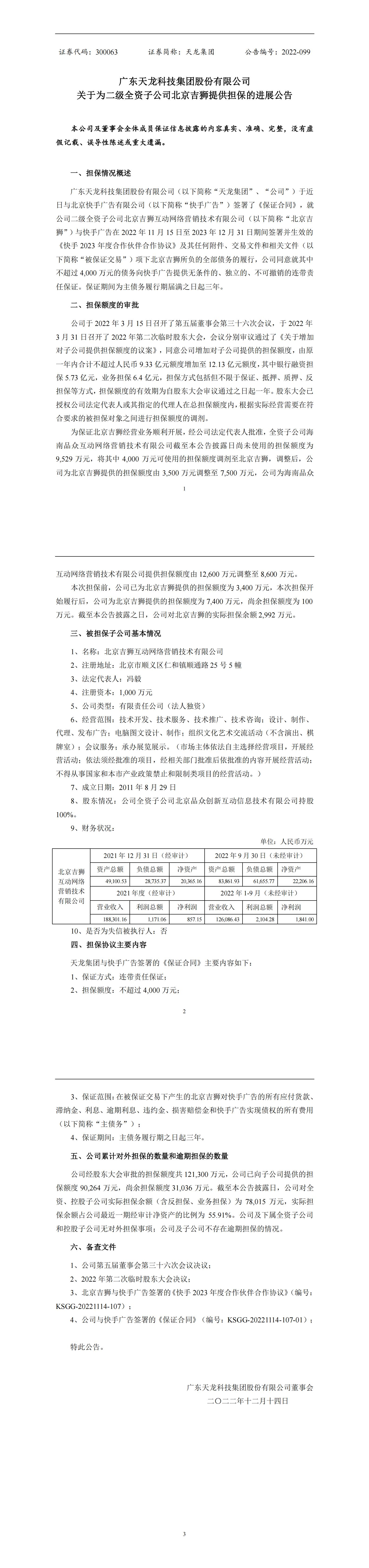 关于为二级全资子公司北京吉狮提供担保的进展公告