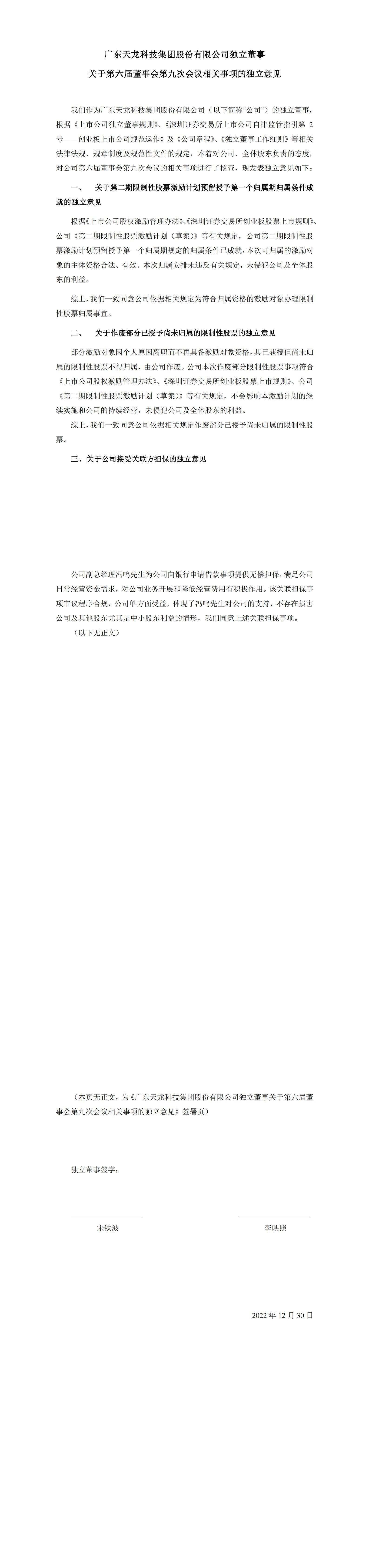 独立董事关于公司第六届董事会第九次会议相关事项的独立意见
