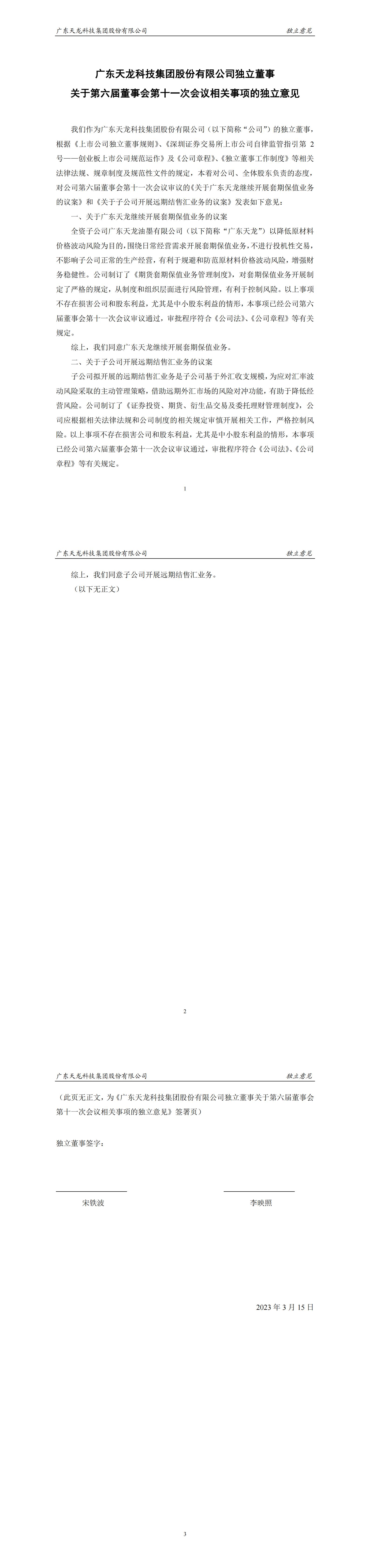 独立董事关于第六届董事会第十一次会议相关事项的独立意见