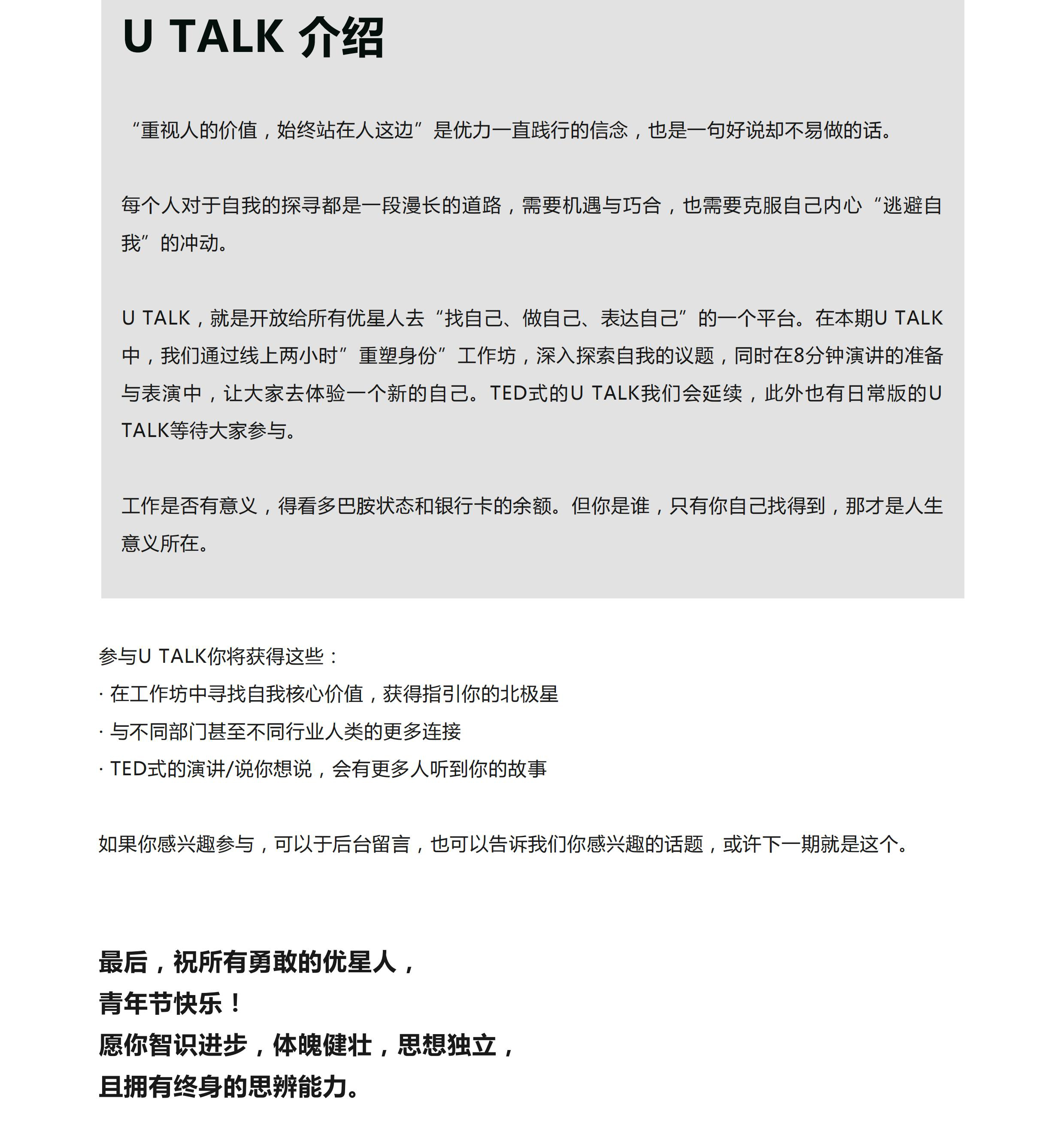 优力互动丨U TALK _ 优力青年,请继续Be U!