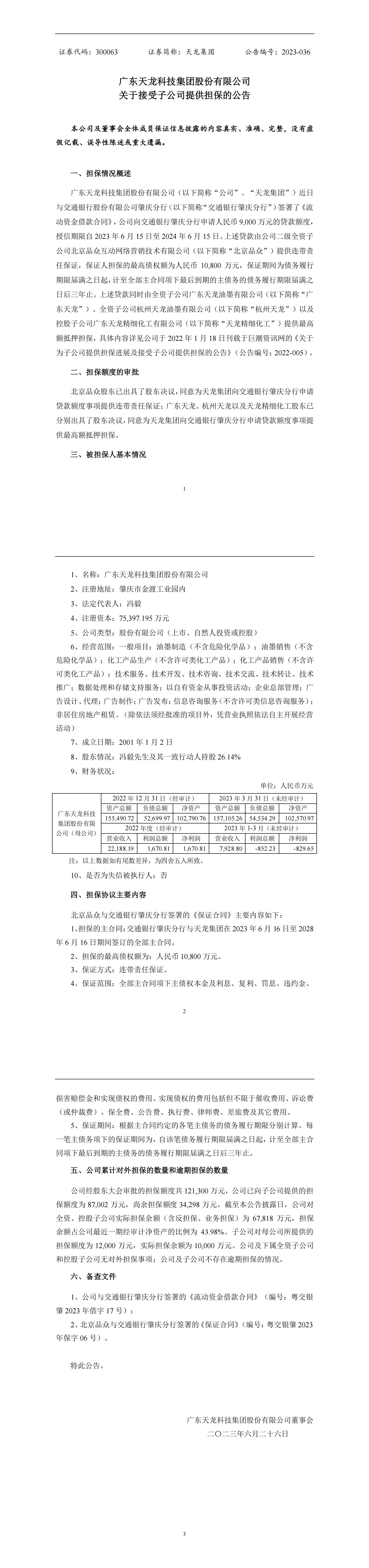 关于接受子公司提供担保的公告