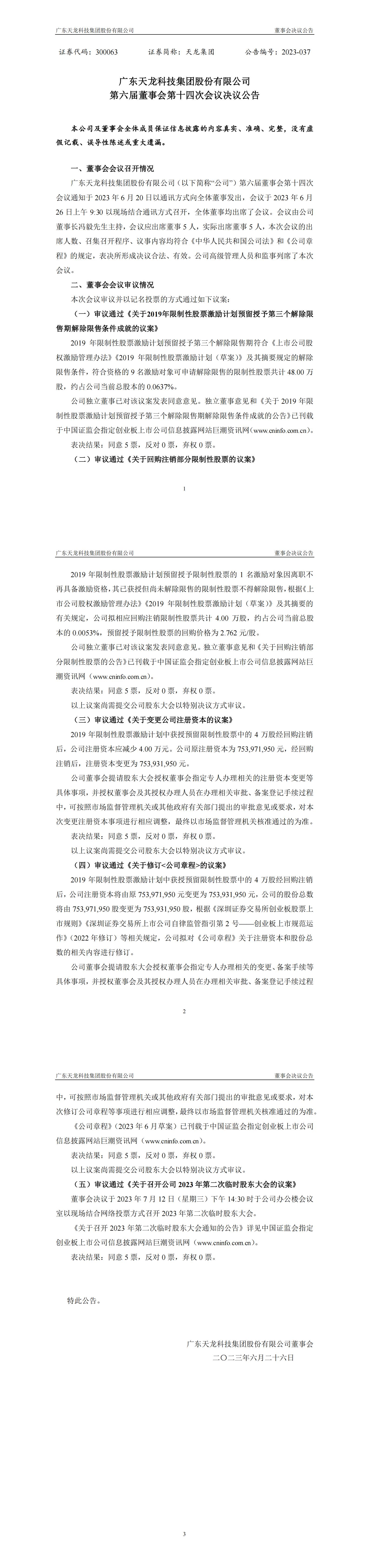 第六届董事会第十四次会议决议公告