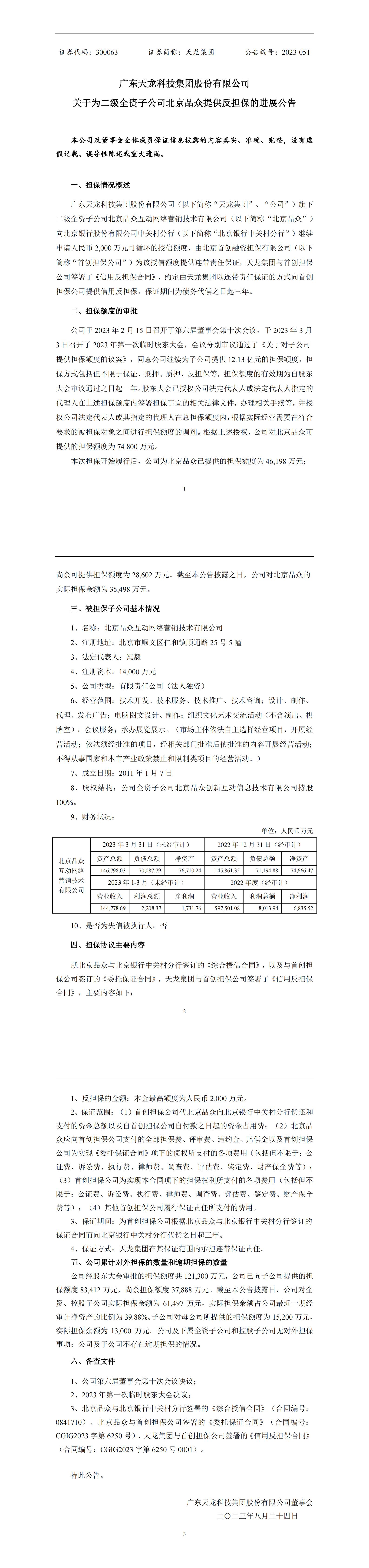 关于为二级全资子公司北京品众提供反担保的进展公告