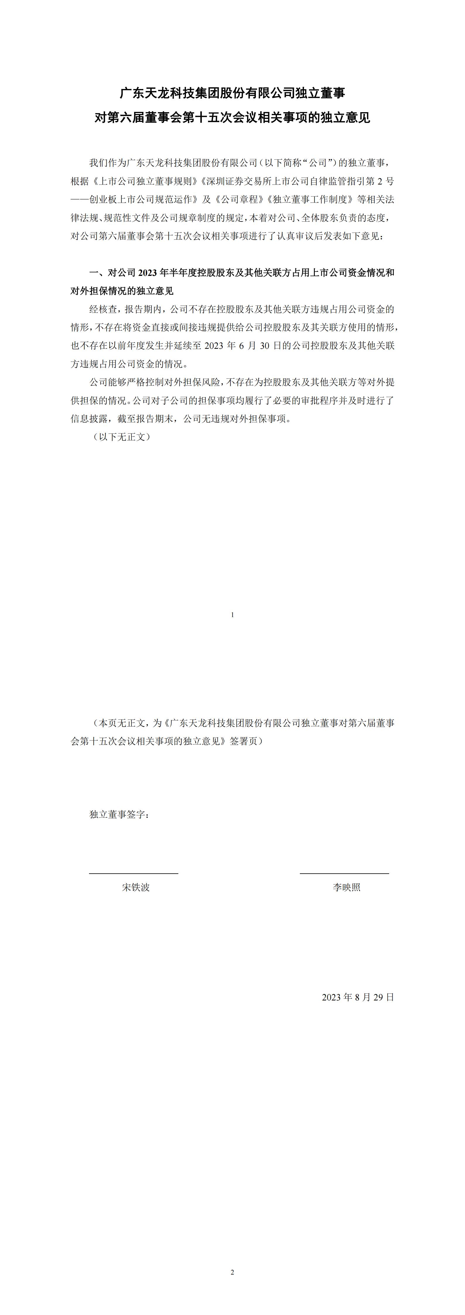 独立董事对第六届董事会第十五次会议相关事项的独立意见