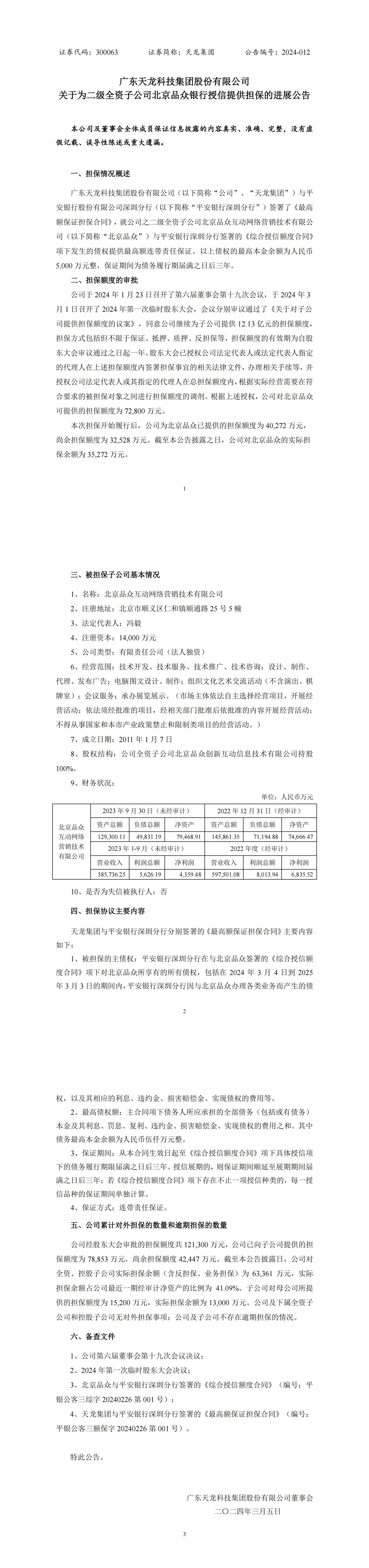 关于为二级全资子公司北京品众银行授信提供担保的进展公告
