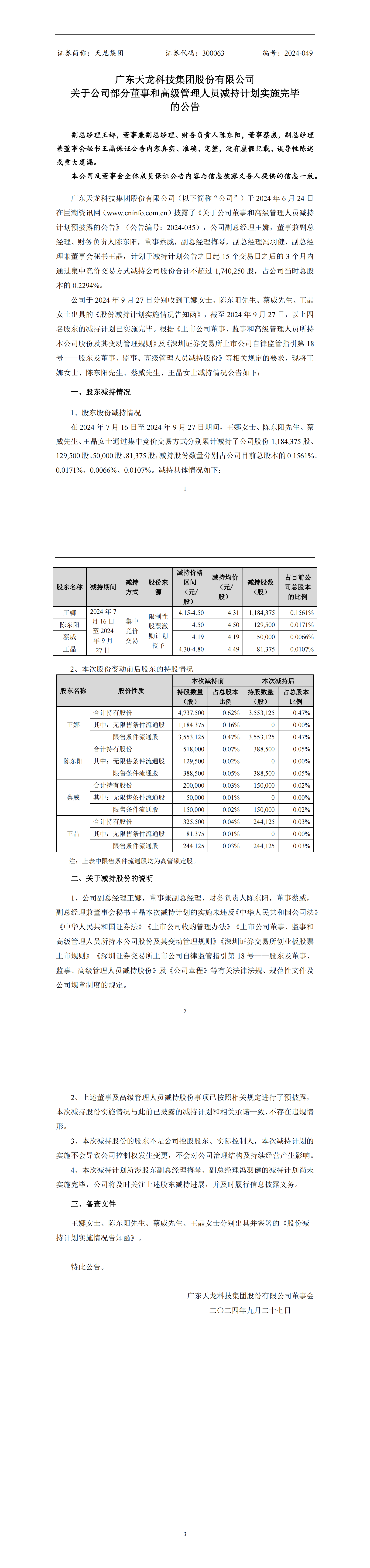 关于公司部分董事和高级管理人员减持计划实施完毕的公告