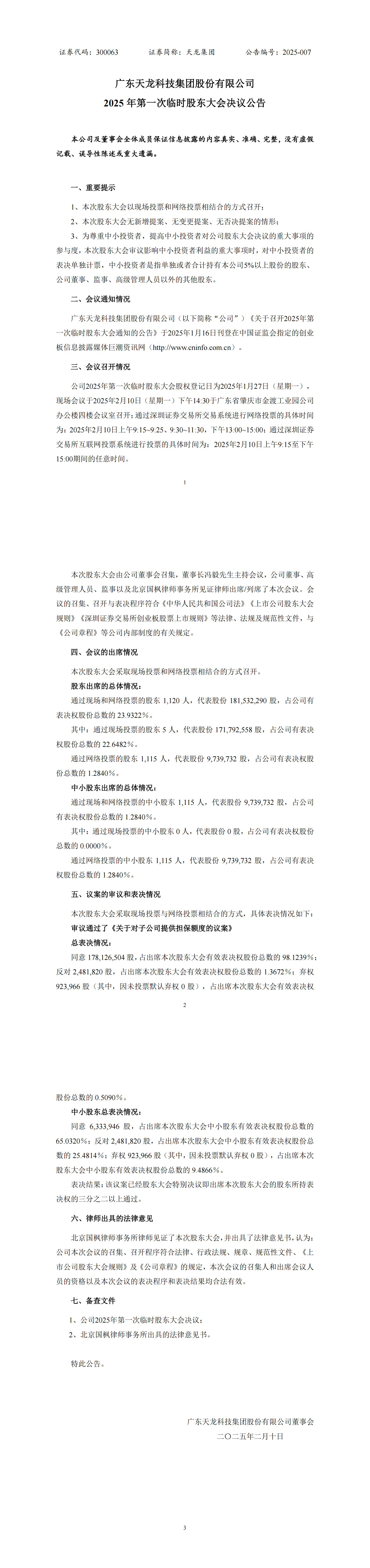 2025年第一次临时股东大会决议公告